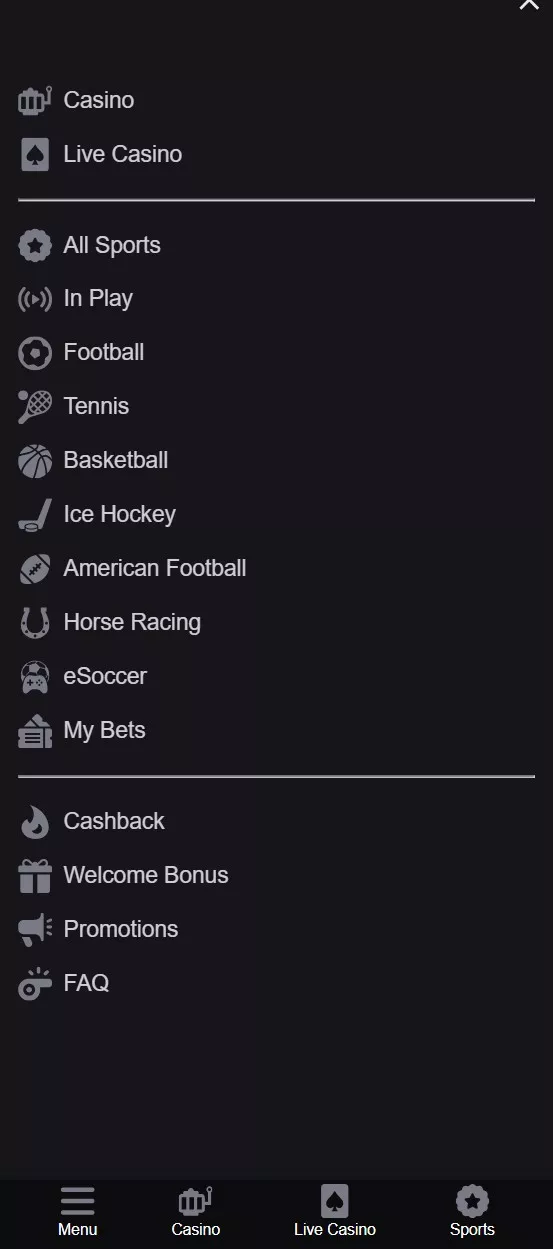 LoginDownloadRegisterNewsAffiliateAbout UsPromotionsContact UsInvite FriendsTerms and ConditionsResponsible Gaming
